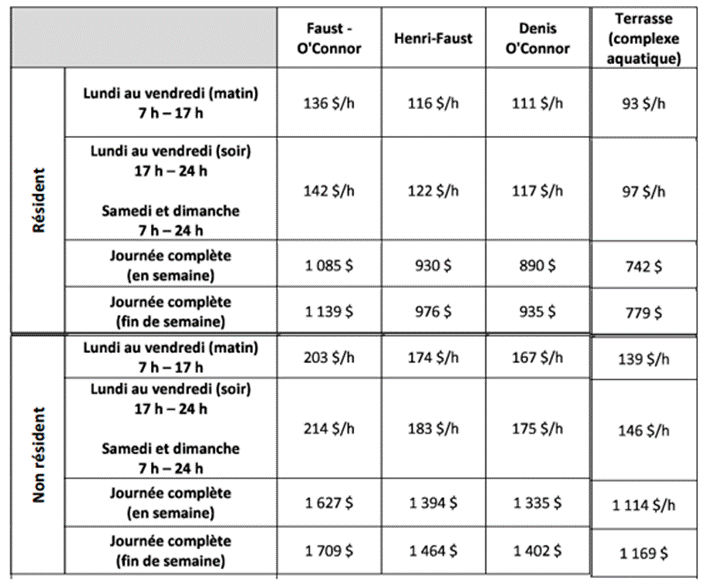 Chaque location de salle inclut les services suivants, offerts par la Ville :